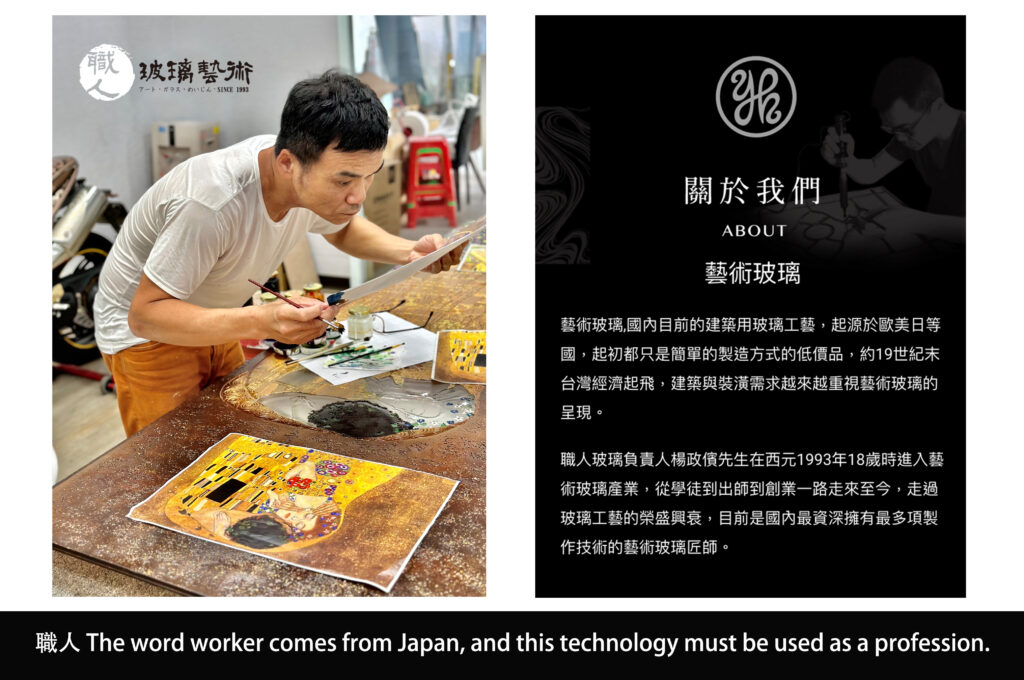 職人玻璃藝術負責人楊政儐先生,十八歲開始學藝術玻璃至今三十二載,將工藝技術與藝術造詣磨練至爐火純青,才能完成這幅一貫天道的觀世音菩薩藝術玻璃,也是台灣唯一純手工繪製全彩仙佛法像的第一人。這篇文章將仔細敘述楊政儐先生與仙佛藝術玻璃的緣份,還有歷經一生苦難方能練就極致手藝的心路歷程。